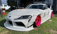 2025 Toyota GT Supra Liberty Walk Body Kit White w/ Pink Wheels in 1:18 scale